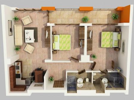Апартаменты с двумя спальнями – 600 евро за год